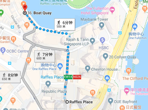 到達路線:乘坐地鐵直落亞逸( Telok Ayer)站出步行3分鐘左右即到 查看在線地圖