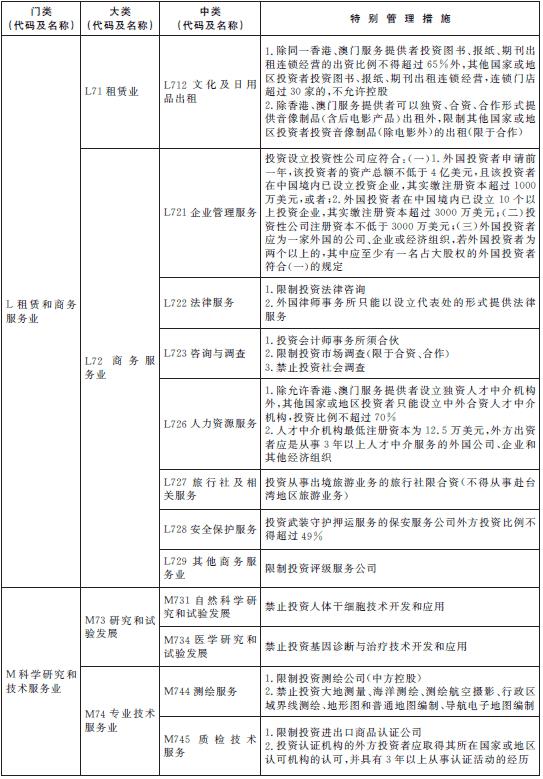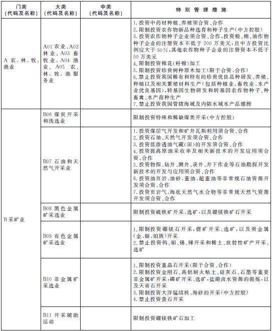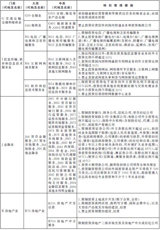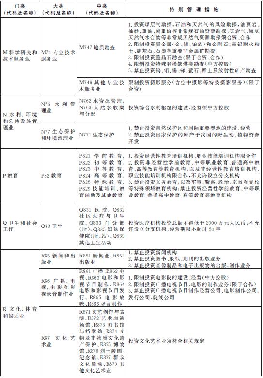 除列明的外商投資准入特別管理措施,禁止(限制)外商投資國家以及中國締結或者參加的國際條約規定禁止(限制)的產業,禁止外商投資危害國家安全和社會安全的項目,禁止從事損害社會公共利益的經營活動。